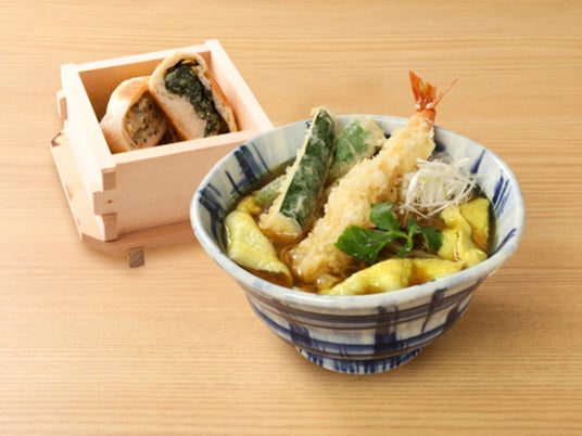 諏訪湖SA(上り) 信州産豚と夏野菜天のカレーそば定食
