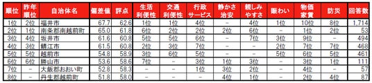 街の住みここちランキング2025<福井県版>自治体TOP8・因子別順位
