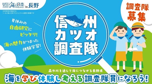 一般社団法人海と日本プロジェクトin長野は、7月30日(水)、31日(木)、8月1日(金)に小学生向け海洋学習プログラム【信州カツオ調査隊】を開催します。長野県伊那市、静岡県焼津市・御前崎市を訪れ、カツオをテーマに山と海のつながり、漁業の現状、気候変動などについて、鰹節生産者や漁協関係者などを講師に迎えて学びを深めます。募集対象は長野県内の小学5、6年生合わせて20人で、締め切りは6月30日(月)です。