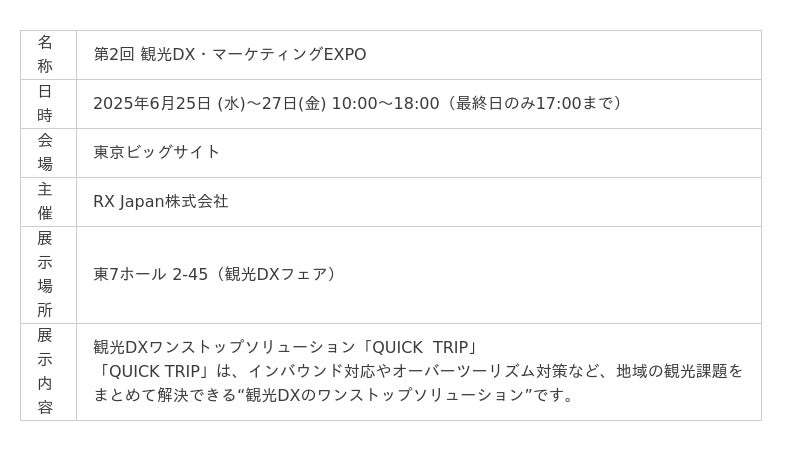 レシップは、インバウンド対応やオーバーツーリズム対策など、地域の観光課題をまとめて解決できる観光DXワンストップソリューション「QUICK TRIP」を展示し、インバウンド対応に関する課題を解決するDXソリューションを提案します。