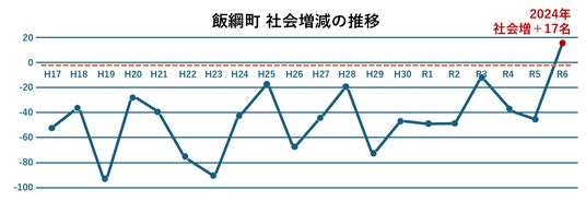 図1. 飯綱町 社会増減の推移:飯綱町企画課人口増推進室 調べ