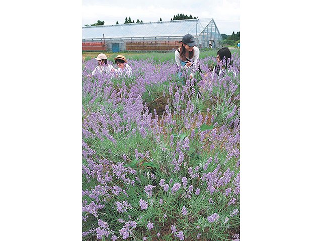 摘み取り体験は有料で7月8日まで実施。上市町出身で友人と訪れた出口ひとみさん(51)=横浜市=は「品種ごとに香りが違う。花を摘んでいるだけで癒やされる」とほほ笑んでいた。