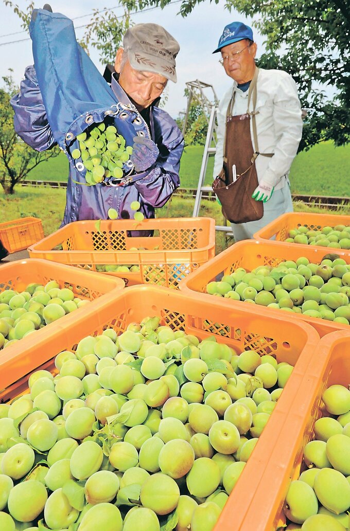 藤井会長(80)は「例年と比べて収量が安定している。実も大きい」と話した。収穫した実は梅干しや梅酒などに加工し、県内のスーパーなどで販売されるという。