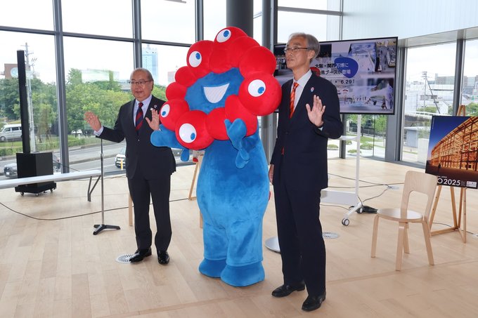 イベント後は大阪・関西万博公式キャラクター「ミャクミャク」が登場し、親子連れらと記念撮影した。