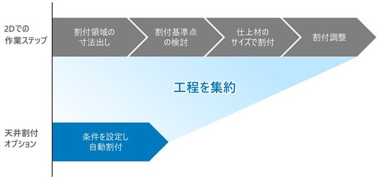 天井割付に必要な4つの工程を1つに集約し割付作業を簡単に。