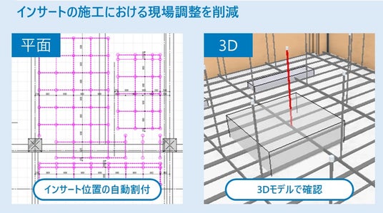 - インサート位置の自動割付機能により、3Dモデル上で干渉状況を確認可能。