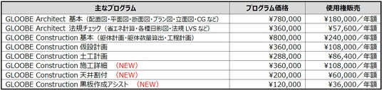 GLOOBE 2025 Architect/Construction 主な価格