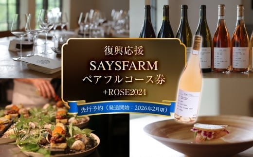 【復興応援】<先行予約> SAYSFARM ペアフルコース券+ROSE2024<2026年2月以降順次発送>ワイナリー名: SAYS FARM(富山県氷見市)