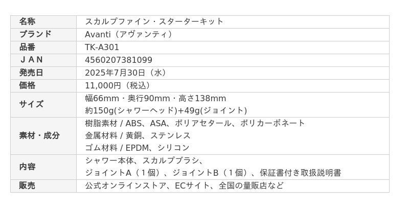株式会社TKS(岐阜市、代表取締役社長:岩永信幸、以下、当社)は、ブラシ一体型ファインバブル(※1)シャワーヘッド「スカルプファイン・スターターキット」を2025年7月30日(水)に発売いたします。メーカー希望小売価格は11,000円(税込)。