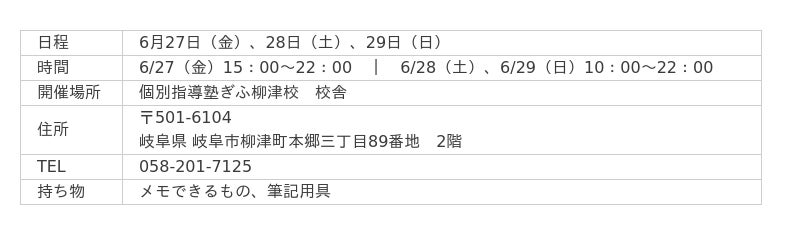 個別指導塾s-Liveぎふ柳津校 開校前説明会の詳細