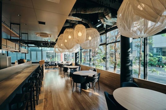 ふくい南青山291の1Fにあるカフェ「Cultive291」は、福井のブランド米「いちほまれ」を使ったメニューをはじめ、ドリンクやカトラリーも福井県産のものにこだわりました。店内でのお食事はもちろん、テイクアウトでも存分に福井を感じていただけます。表参道駅から徒歩4分、アクセスしやすい場所でありながらも人が多い大通りから少し道に入った立地は、スタイリッシュで落ち着いた空間の飲食スペースとなっています。
