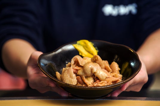 「さぶろうべい」の味の決め手でもある「万能たれ」は、先代三郎平氏が作り上げた創業以来の味を引き継いだ、しょうゆベースにコク深い旨味を加えた”秘伝のたれ”です。とり白菜鍋はもちろん、焼き物、炒め物、冷奴、サラダなど、どんな料理にも相性抜群で、“かけるだけ、漬けるだけ、和えるだけ”と使い方は自由自在です。また、人気メニュー「とりかわ」は、ひとつずつ丁寧な手作業で仕込み、秘伝のたれで煮込んだ逸品。
