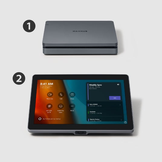 ※MAXHUB「XCore Kit for Microsoft Teams Rooms」セット内容1.Mini-PC(XC13T)2.タッチコントロールパネル(TCP20T)