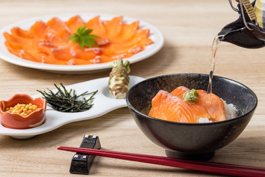 食べ進めたあとは、信州サーモンのアラで取った特製出汁をかけ、安曇野産の粗切りわさびとともに〆のお茶漬けとしてお楽しみください。お一人様はもちろん、シェアしてもお楽しみいただけます。SNS映え間違いなしの期間限定メニューです。