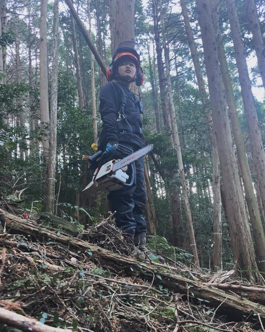 毎週自ら山林へ出向き、林業企業の伐採に参加