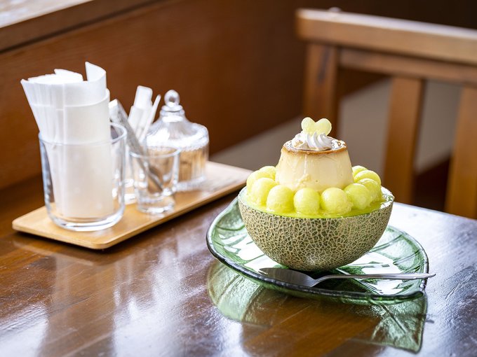 完熟メロン半玉を使う 大胆で繊細なかき氷