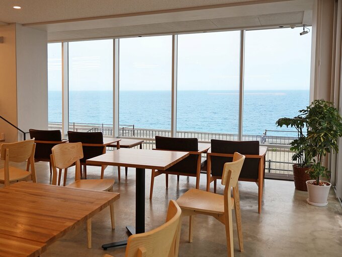 朝日町にヒスイ海岸の絶景を見渡せるカフェがオープンした。おすすめは、LED技術を使って水耕栽培した、地元の「翡翠(ひすい)メロン」を使うメニュー。「翡翠メロンフラッペ」は、赤肉メロンのジュレ、緑肉メロンのフラッペの層が目にも鮮やか。爽やかな甘さや風味の違いを堪能したい。(情報は取材時の内容です)