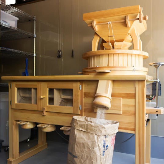 工房のもう一つの見どころは、オーストリア製の石臼式自家製粉機。長野や埼玉、北海道、三重の厳選国産小麦を低速・低温で丸ごと製粉し、香りや風味を保っています。その日の温度や湿度に合わせて、必要な分だけを製粉するため、挽きたての小麦粉特有の甘みと旨みをお楽しみいただけます。