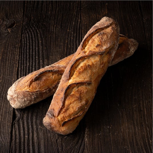 埼玉県産無農薬「農林61号」と三重県産「にしのかおり」の2種の国産小麦を使い、それぞれの個性を引き出しています。薪窯で焼くことで、香ばしいクラストとしっとりしたクラムが特徴のバゲットに仕上がります。