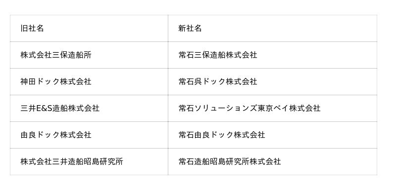 常石造船株式会社(本社:広島県福山市、代表者:代表取締役社長執行役員 奥村 幸生)は6月30日より下記造船セグメントの5社について社名を変更いたします。あわせて、造船セグメント全社の企業ロゴを常石グループのグループロゴへ統一いたします。