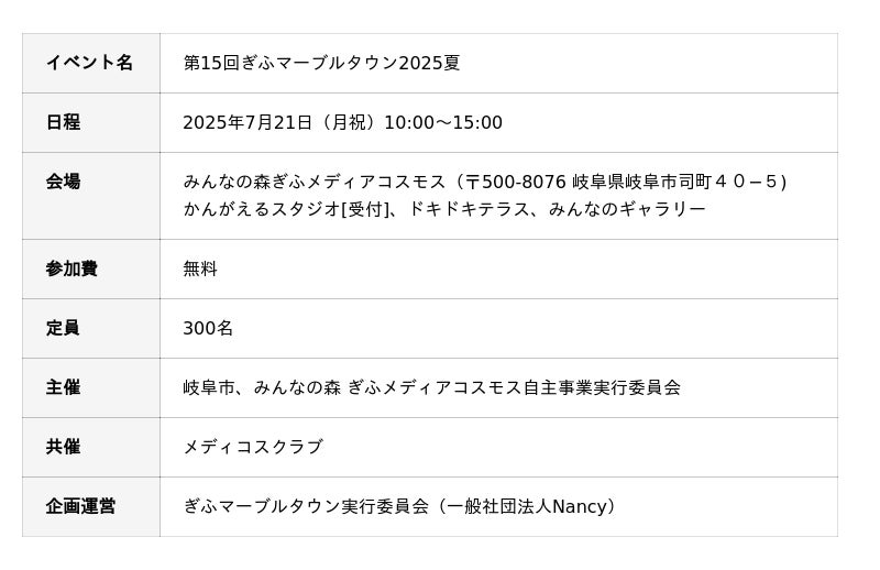 イベント名:第15回ぎふマーブルタウン2025夏
