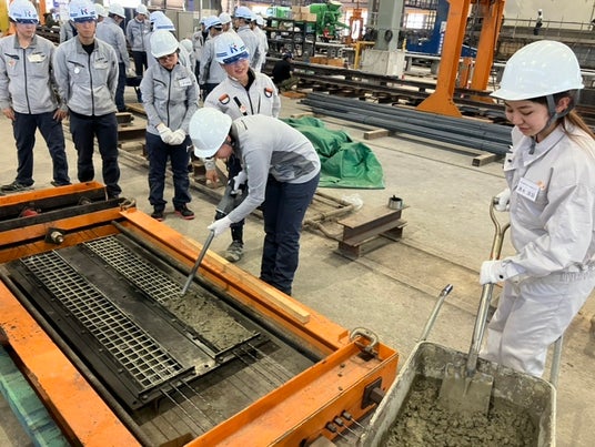 当社のインターンシップでは、座学だけでなく実際の製作実習や現場体験を通じて、プレストレストコンクリート技術の魅力と可能性を体感できます。