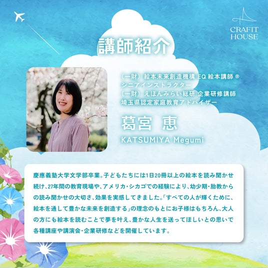 福井県坂井市で注文住宅、建売、リノベーション、不動産事業を展開するCRAFIT HOUSE(代表取締役:川端 一輝)は、7月12日(土)に坂井市のハートピア春江にて「絵本読み聞かせ&育児のヒント講座」を開催いたします。