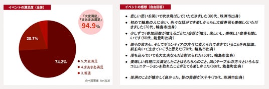 満足度について調査したところ、参加者の94.9%がイベントに「満足」と回答。自由記述や聞き取りからは、以下のような場の効果が見えてきました。