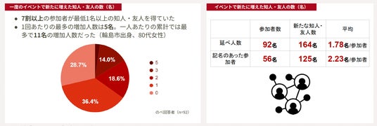 また参加者の7割以上が、イベントを通じて1名以上の新たな知人・友人ができたと回答。孤独・孤立の予防に対する効果が見られました。毎回のイベントで意図的に交流時間を設けるなど、他者との接点を促す工夫がこうした変化を後押ししたと考えられます。