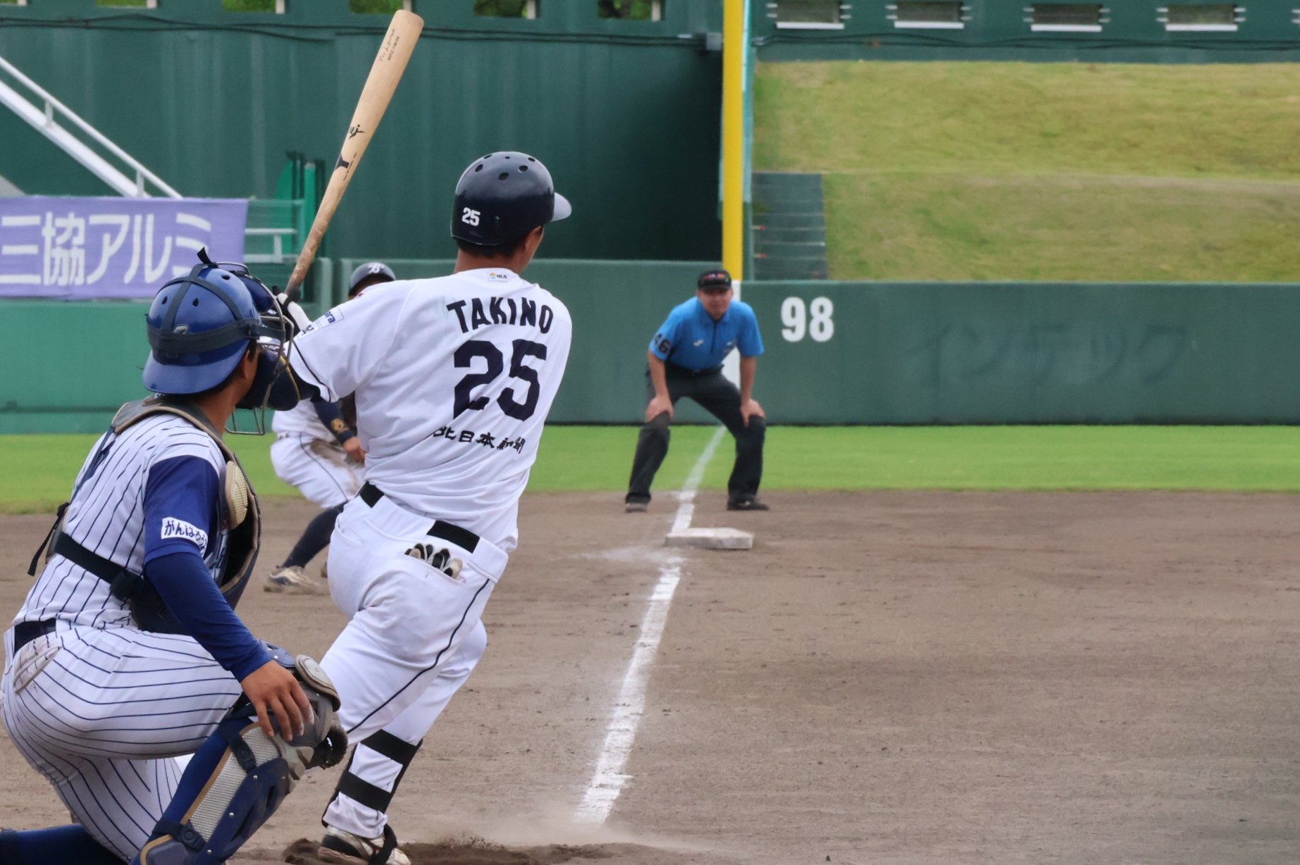 富山は3-5で迎えた八回、1死からシンが本塁打を放ち、反撃ののろしを上げた。その後、古賀、境が安打で続き、2死二、三塁の場面で瀧野が逆転の3ランを放った。