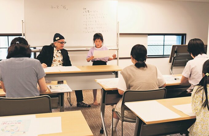 ねじめさんは小説と詩の違いに触れ「言葉と言葉の組み合わせが詩の楽しさ」と紹介。「詩の言葉を考えるに当たって凡庸であってはいけない。みんなが使っている言葉は使わないという意気込みが大事」とアドバイスした。参加者は「石」「文房具」をテーマに詩を作り発表した。