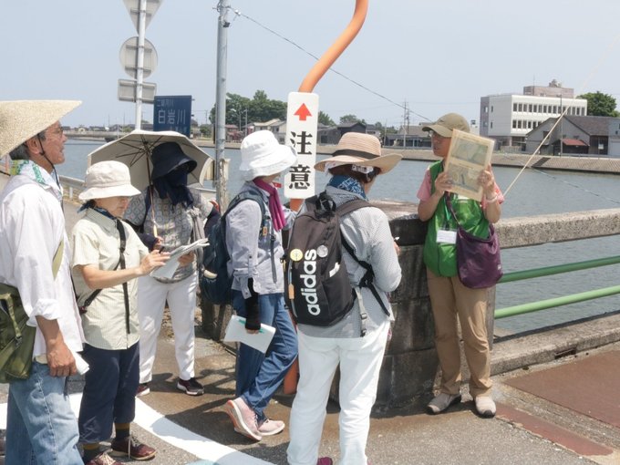実際に左岸の水神社から、東西橋を渡って右岸の水神社まで歩くと、旧水橋川の大きさを体感していた。地元の水橋地区在住の男性は「家の周辺でも知らないことがたくさんある。もっと歴史を知りたいと思った」と話した。