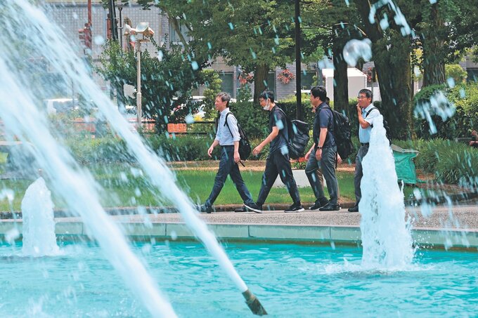 噴水で涼感 10日の富山県内真夏日 2025年7月11日 05:00 社会・話題 勢いよく上がる噴水の横を歩く人=県庁前公園 10日の県内は高気圧に覆われ、晴れや曇りとなった。富山地方気象台によると、最高気温は富山市秋ケ島(富山空港)31・4度、氷見30・5度、砺波30・3度と、県内全10観測地点のうち3地点で30度を超える真夏日となった。 県庁前公園では強い日差しの下、大噴水が勢いよく上がっていた。行き交う人は陽光を受けてきらめく水を眺め、つかの間の涼を味わっていた。 この機能は会員限定です。 お気に入りの記事を保存し、マイページで読むことができます。 ログイン 会員登録はこちら