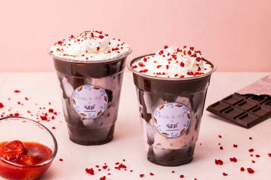 2025年秋の新作コスメの繊細なデザインをイメージした「アイシングクッキー」は、まるで小さなアート作品のようなお菓子です。コスメと一緒に写真を撮ったり、旅の思い出として持ち帰ったりと、さまざまな楽しみ方ができます。チョコレートを自分で割って楽しむ「クラッキングドリンク」は、遊び心あふれる一杯。チョコレートを割るパキッという感覚、ミルクと混ざり合う瞬間の色の変化、そして口の中に広がるいちごの甘酸っぱさが、新コレクションのテーマである「L'Eternelle Palpitation~永遠のときめき~」を表現しています。