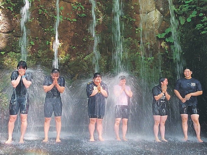 富山県滑川市で強化合宿を実施中の重量挙げ日本代表は11日、上市町大岩の大岩山日石寺で滝行を行い、2028年のロサンゼルス五輪への出場など今後の世界大会での活躍を祈願した。