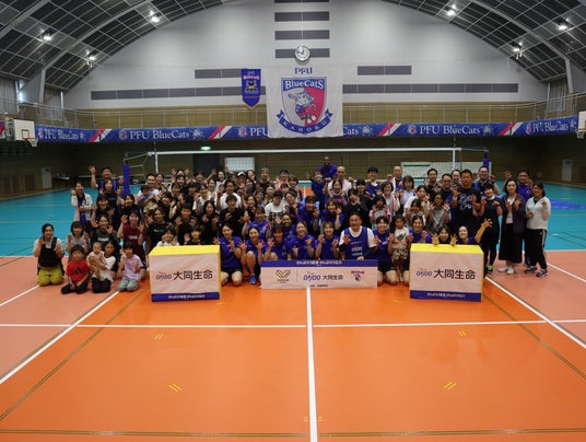 今回のイベントは、「大同生命保険株式会社」金沢支社の社員のみなさま、その関係のみなさまに、ブルーキャッツを身近に感じていただきたく、企画いたしました。選手から直接教えてもらうバレーボール体験に加えて、普段は見ることができないクラブハウス見学など、ブルーキャッツを「知って」「みて」「体験する」特別な1日となりました。