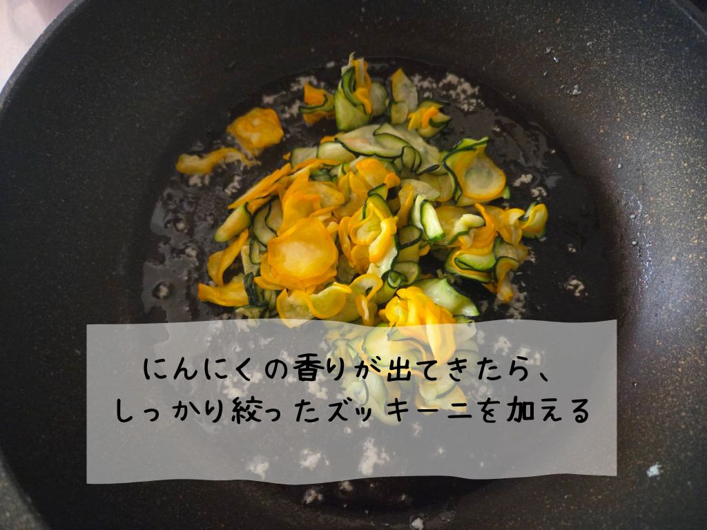 コリコリとしたズッキーニの食感が楽しい一品です!