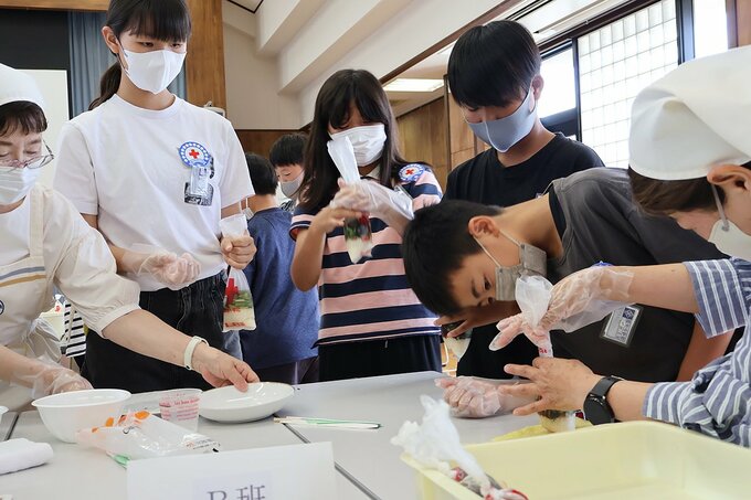 児童は、熱に強い特殊なビニール袋を用いた炊飯を体験した。袋の破裂を防ぐには空気をしっかり抜く必要があるため、慎重に作業に取り組んだ。炊き上がった米は持ち帰った。初めて自分で米を炊いたという児童もおり、うれしそうな様子だった。