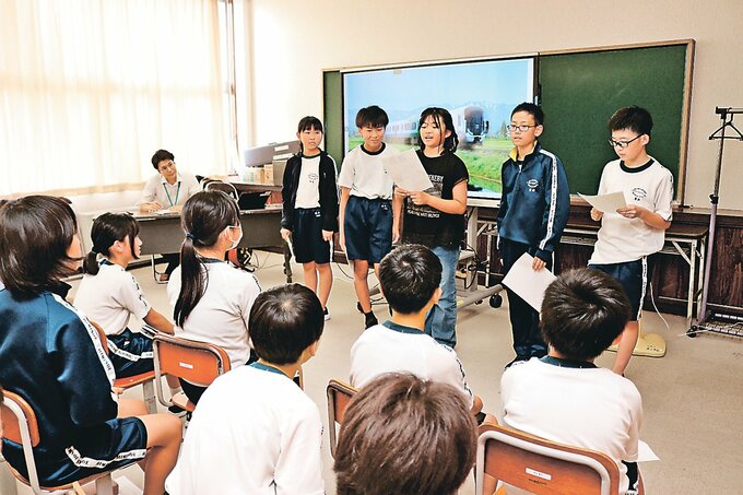 JRの城端、氷見両線の活性化について考える授業が16日、富山県の氷見市比美乃江小学校であった。6年生65人が、JRからあいの風とやま鉄道への経営移管に伴って導入される新型車両のPR方法を発表した。