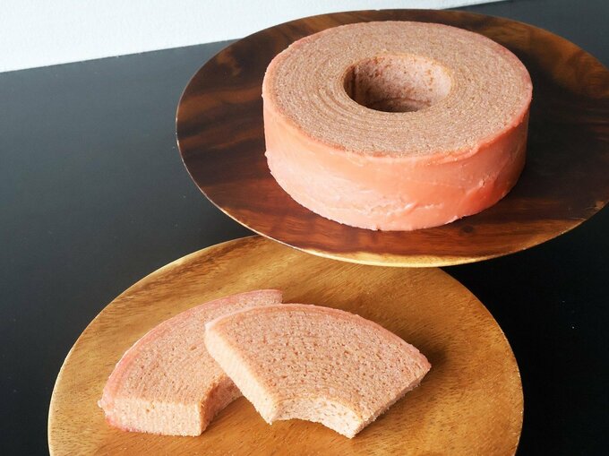 色や風味の違う2層の蜜で、和の色彩を表現するバームクーヘン専門店が誕生した。県産の米粉と仁光園(高岡市)の卵をふんだんに使用する生地は、ソフトとハードの2種類。「香」は塩と甘こうじ、「今様」はいちごと梅の蜜が、ふんわりとした生地の上品な甘さを引き立てる。手土産に最適。(情報は取材時の内容です)