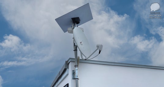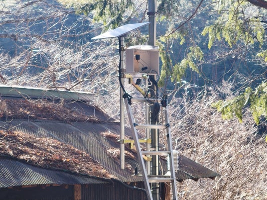 国立大学による実証プロジェクトで、LTE電波が届かない山間部に測定データの通信手段として設置されたスターリンク