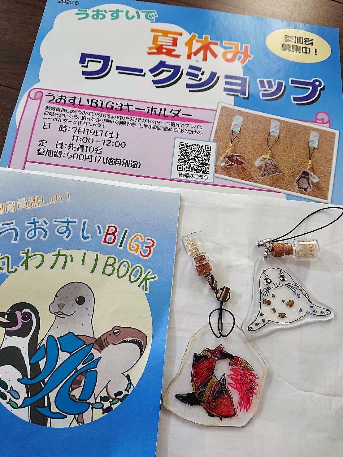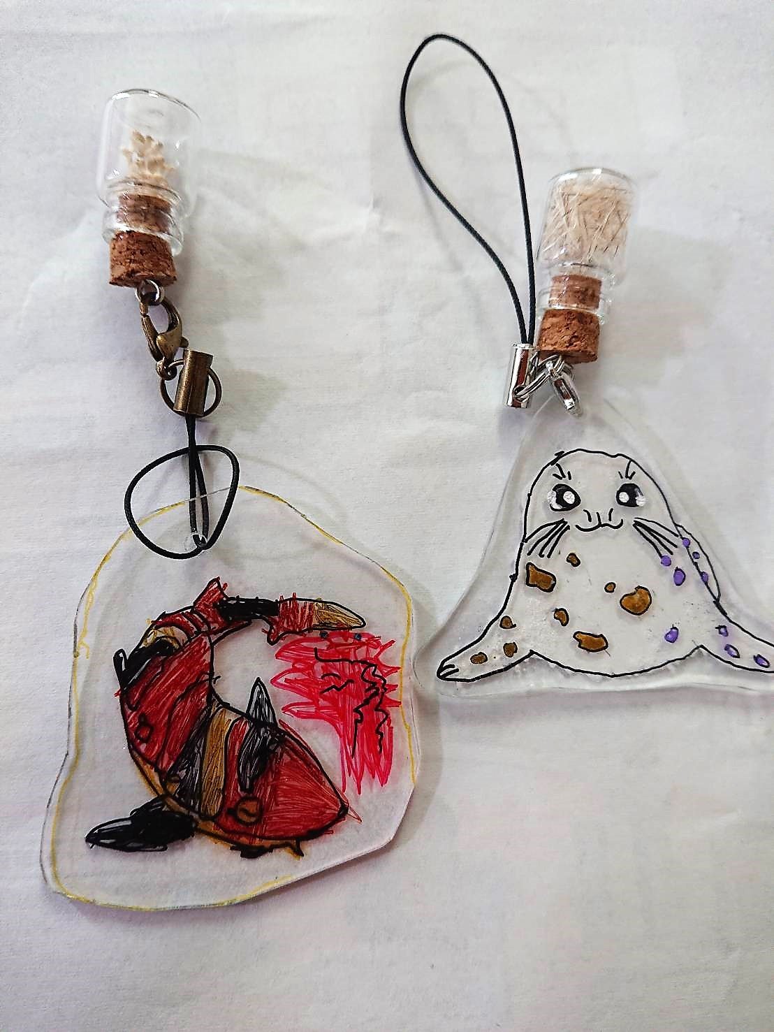 ドチザメ、ペンギン、アザラシから好きな生き物を選んでキーホルダーを作りました。