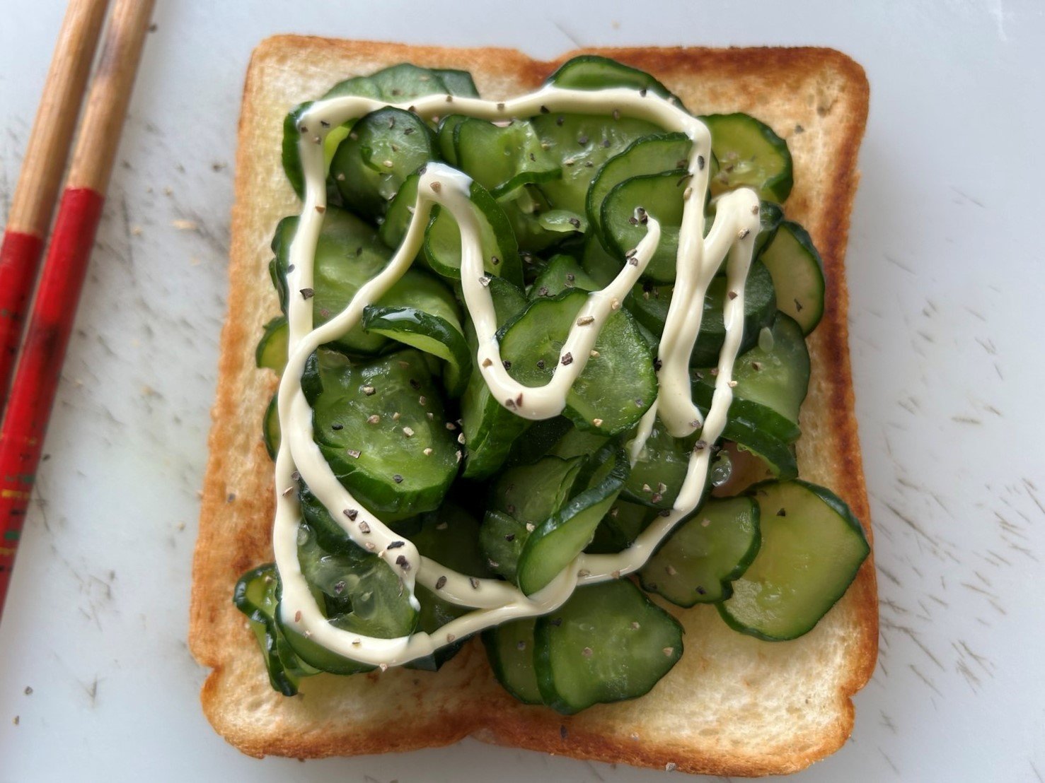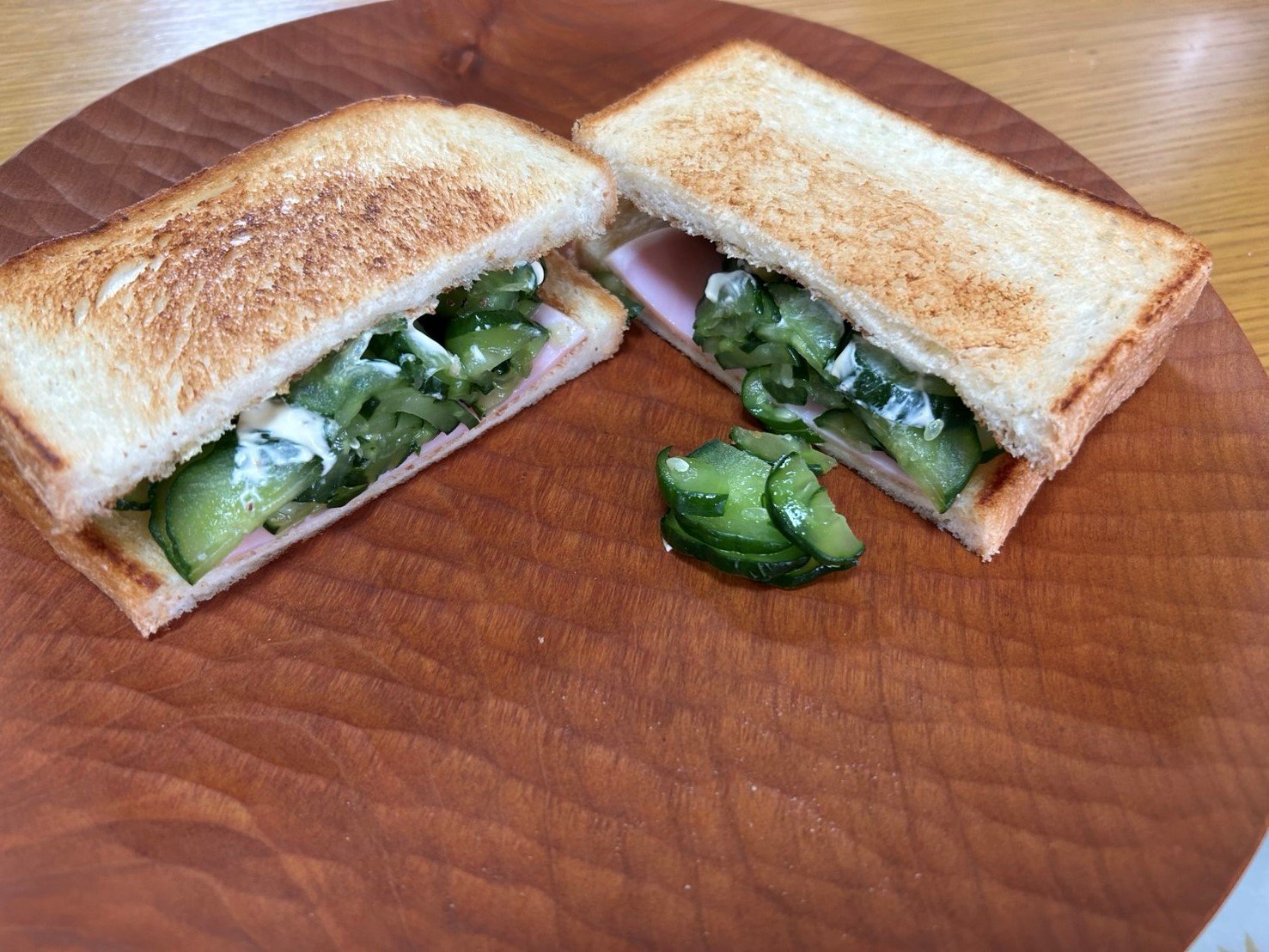 キュウリ一本も入れるの?ってびっくりしますが、バターが香るパンに挟んで塩味で食べるサンドは、大人な味わいです。ツナや卵に変えてもいいですが、キュウリ1本入れて作ってみてください。美味しいです。