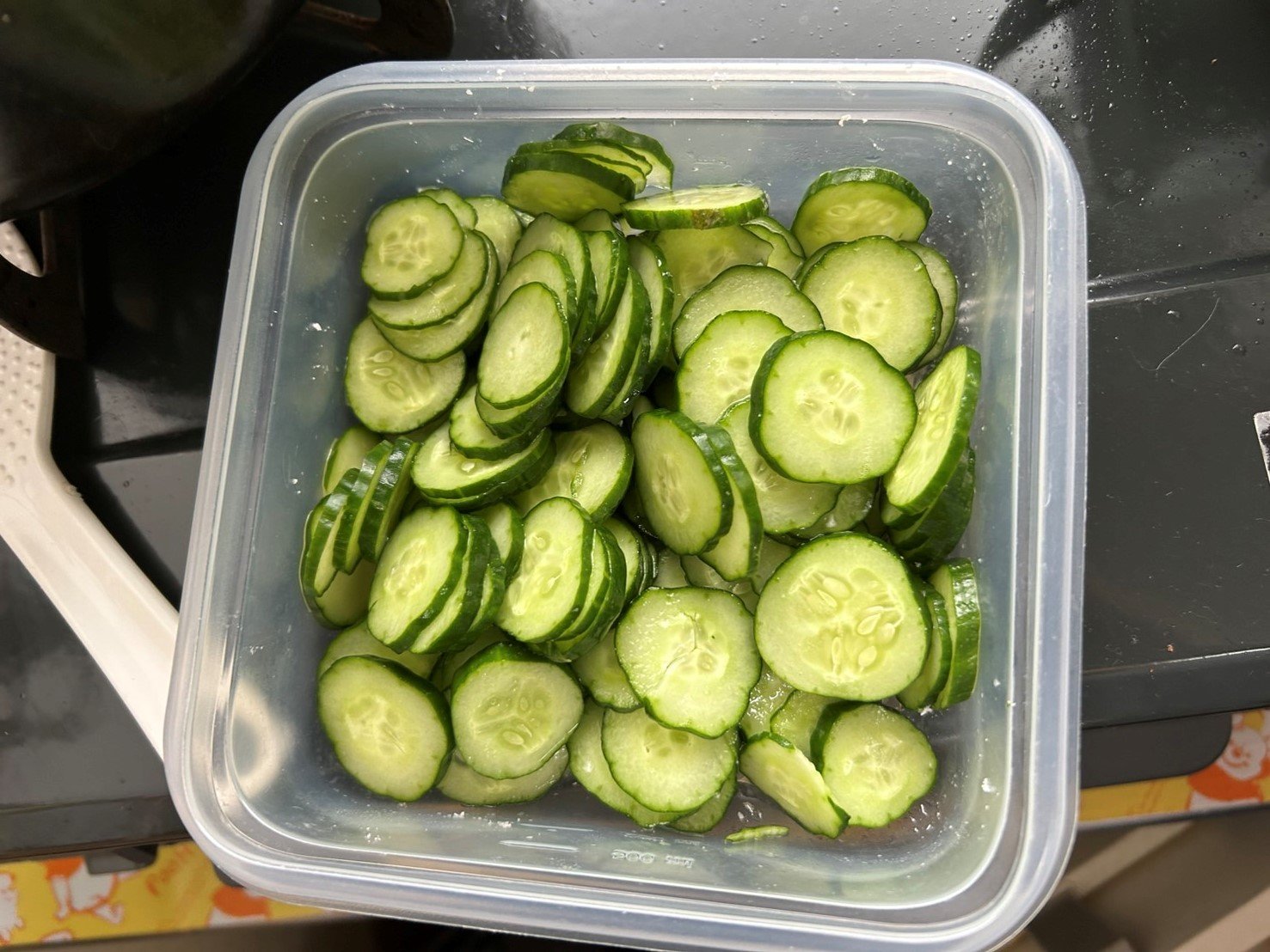 ②きゅうりはしばらくして、しんなりしたら水気を切る