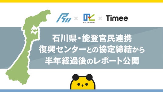 スキマバイトサービス「タイミー」を提供する株式会社タイミー(所在地:東京都港区、代表取締役:小川 嶺)は、石川県、能登官民連携復興センターとの「復興支援に係る連携協定」の締結から半年経過後のレポートを公開します。
