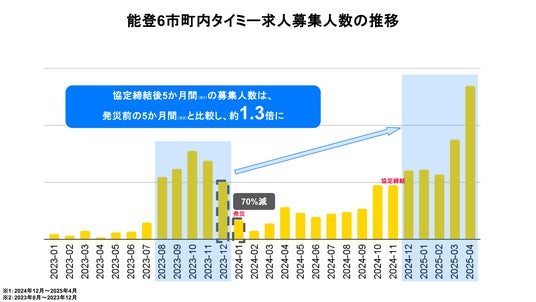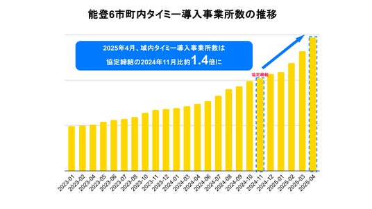 2025年4月には、能登6市町内の事業所数が、協定締結の2024年11月比で約1.4倍に増加しました。