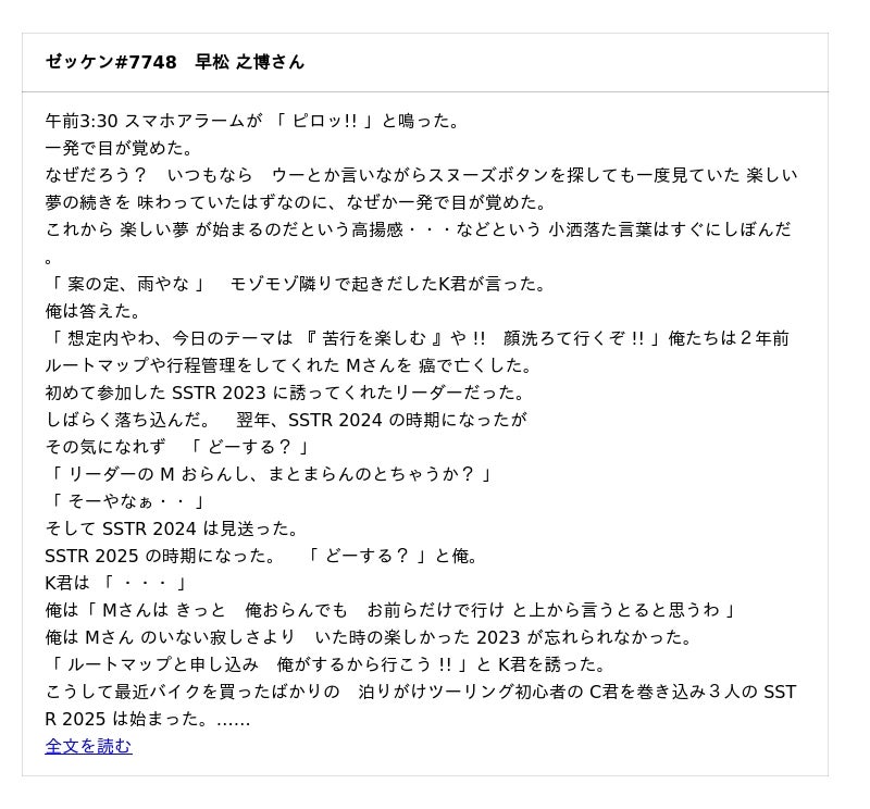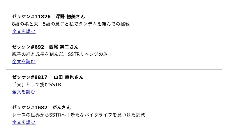 SSTR2025 AWARDの受賞者が決定しました。感動の参戦記、心に残る写真や動画など、それぞれの個性が光る物語の数々をぜひご覧ください。