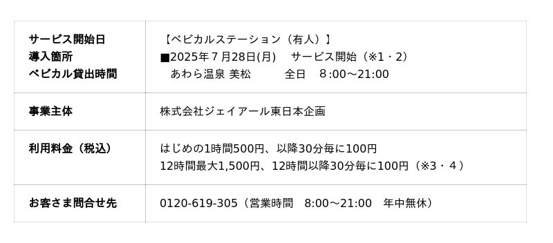 ○この度、株式会社芦原国際ホテル美松と連携し、あわら温泉 美松で7月28日よりサービスを開始します。ベビーカーは、お子さまに人気の新幹線E7系かがやきベビーカーを貸出いたします。