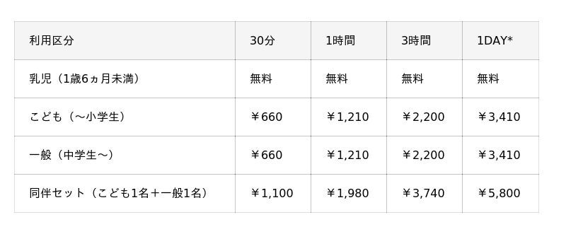 ※9歳以下のお子様のご利用には、一般1名様のご同伴が必要です。
