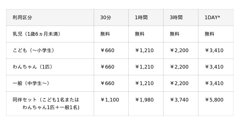 ※わんちゃんは、黒姫の森プレイランド~Naka~をご利用いただけません。
